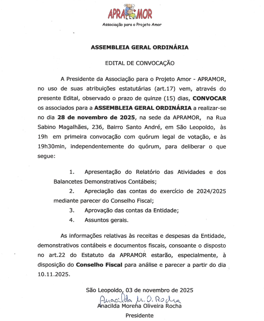 JULHO/2025 na APRAMOR é tempo de férias escolares! Crianças e adolescentes vão à pizzaria! Observação: O saldo da aplicação financeira no Banrisul conta convênio destina-se ao pagamento dos salários em início de agosto, na conta Fundo esgotou-se o projeto das doações feitas no imposto de renda de períodos anteriores. Aguarda-se novo repasse para a continuidade […]